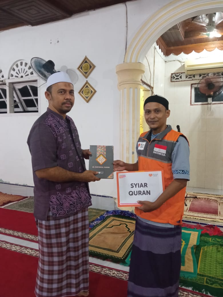 SABANG (Waspada): Fasilitator Rumah Zakat, T. Hilnanda melaksanakan penyaluran Paket Syiar Quran kepada para santri yang sedang aktif mengikuti kegiatan Ramadan yaitu pengajian Al Quran pada bulan suci Ramadan di Meunasah Al Furqan Gampong Ie Meulee Kecamatan Sukajaya Kota Sabang Provinsi Aceh.