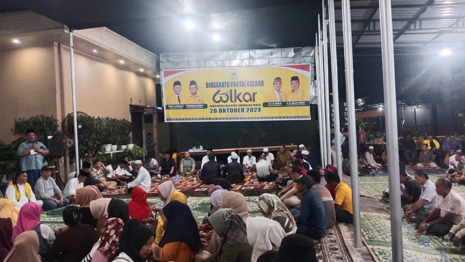 KUTACANE (Waspada): H. M. Salim Fakhry, SE, MM-dr Heri Al Hilal (SAH) pasangan calon (Paslon) Bupati dan Wakil Bupati Aceh Tenggara nomor urut 1, menggelar peringatan Hari Ulang Tahun (HUT) ke-60 Partai Golkar 20 Oktober 2024, di Desa Muara Lawe Bulan (Kuta Pengkih), Kecamatan Babussalam, pada Senin (21/10) malam.