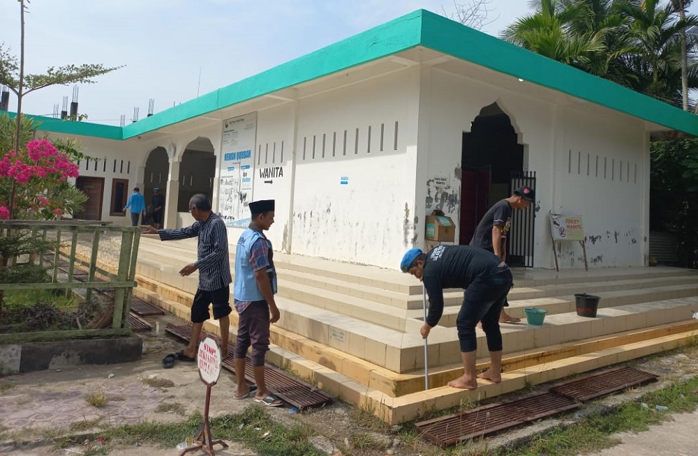 PEUREULAK (Waspada): Pengurus Badan Komunikasi Pemuda Remaja Masjid Indonesia (BKPRMI) bersama Brigade Masjid (Brimas) melakukan pemeliharaan masjid. Sasarannya adalah membersihkan toilet, tempat wudhuk dan lantai serta pekarangan masjid di 100 titik masjid dan musalla dalam Kabupaten Aceh Timur.