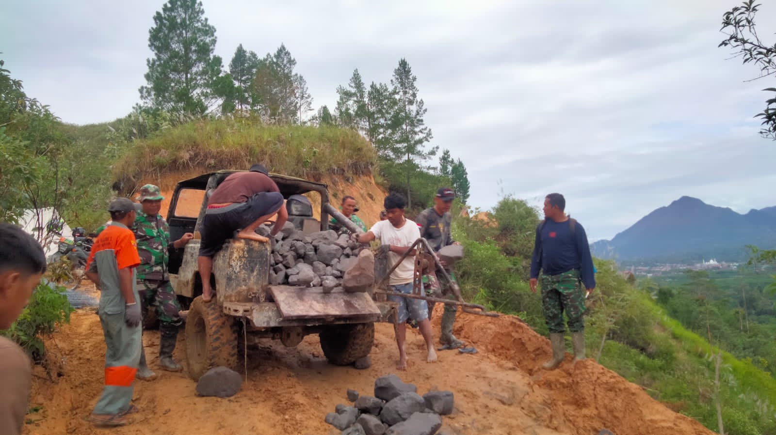 “Kami berharap personel satgas tetap semangat meski hujan turun, sehingga akses jalan yang telah dibuka dapat segera dimanfaatkan masyarakat,” ujar Kapten Arh Agil Mohamad Warif.