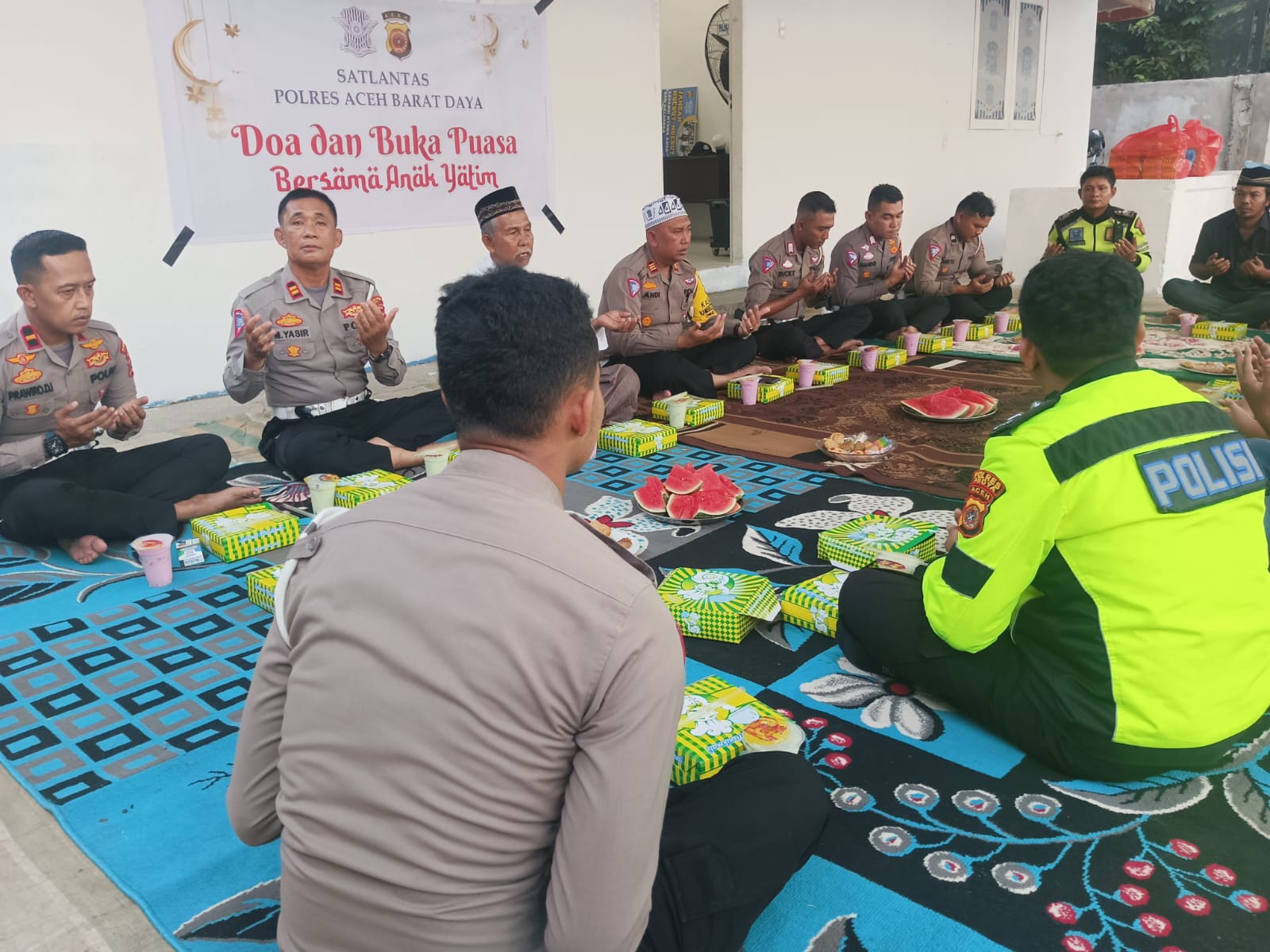 BLANGPIDIE (Waspada): Satuan Lalulintas (Satlantas) Jajaran Polres Aceh Barat Daya (Abdya), Senin (1/4) lalu, menggelar buka puasa bersama dan doa dengan para anak yatim, yang ada dalam wilayah Desa Geulumpang Payong, Kecamatan Blangpidie.