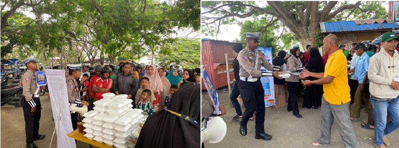Dalam kegiatan ini, personel Satlantas Polres Lhokseumawe membagikan nasi kotak dan minuman kepada mereka yang membutuhkan.
