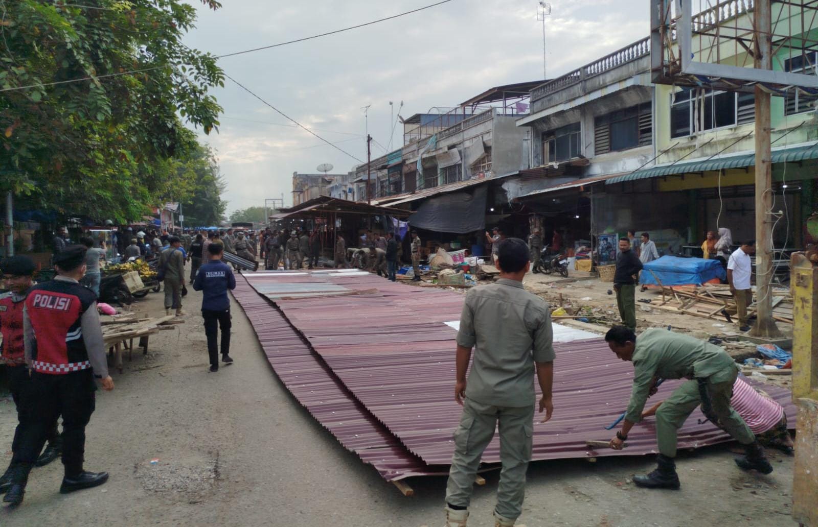 Penertiban pasar yang melibatkan personel Satpol PP Kota Langsa dibantu aparat TNI dan Polisi serta dari personel Dinas Perhubungan Kota Langsa.