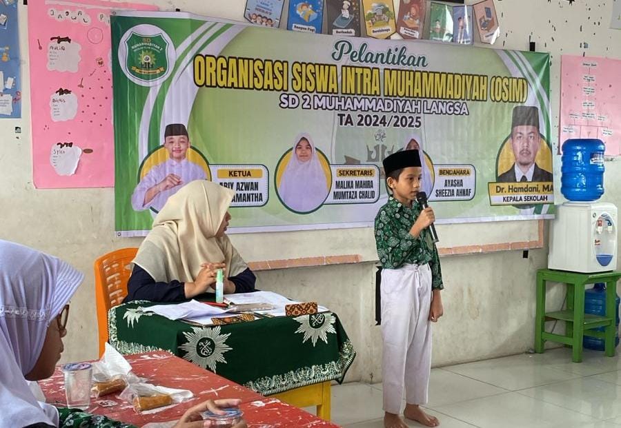 Kepala SD 2 Muhammadiyah Langsa Dr. Hamdani, MA mengucapkan, selamat atas pelantikan pengurus OSIMU tahun 2024/2025. Pengurus OSIMU yang sudah dilantik harus menjadi motivasi bagi siswa-siswi lainnya, agar jauh lebih semangat dalam belajar dan berorganisasi.’
