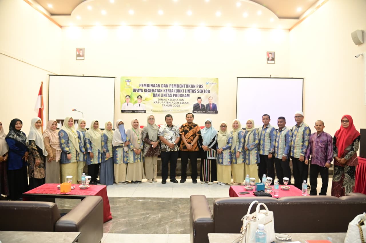KOTA JANTHO (Waspada.id): Sekretaris Daerah Kabupaten (Sekdakab) Aceh Besar Bahrul Jamil, S.Sos MSi. membuka kegiatan Pembinaan dan Pembentukan Pos Upaya Kesehatan Kerja (UKK) Lintas Sektor dan Lintas Program Tahun 2025, yang berlangsung di Orion Hall, Gampong Garot, Kecamatan Darul Imarah, Aceh Besar, Kamis (6/11).