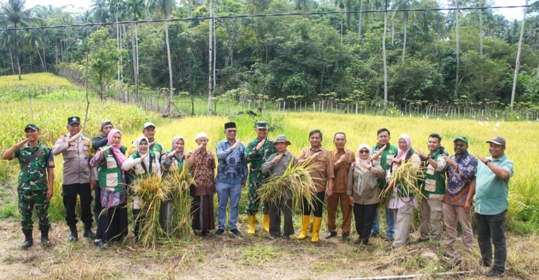 SABANG (Waspada.id): Sekretaris Daerah Kota Sabang Andri Nourman bersama para petani, Komandan Kodim 0112/Sabang Letkol Kav. Edi Purwanto dan dinas terkait, serta aparatur setempat melaksanakan panen perdana padi gogo dalam rangka Program Ketahanan Pangan Gampong Tahun 2026 di Jurong Alue Jaya, Gampong Bateeshoek, Kota Sabang.