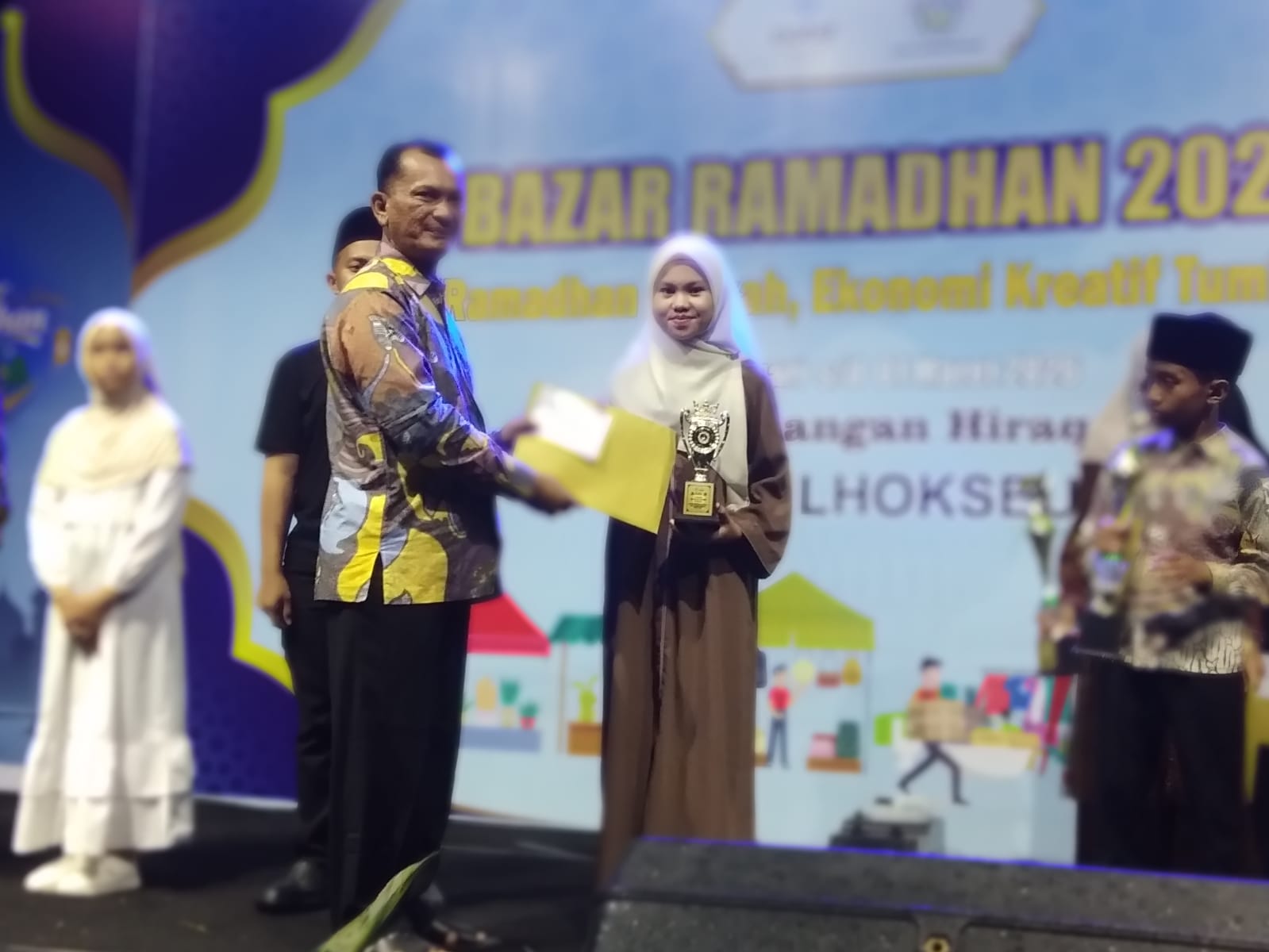 LHOKSEUMAWE (Waspada.id): Kegiatan Bazar Ramadhan di lapangan Hirak Kec. Banda Sakti akhirnya ditutup secara resmi oleh Sekdako Lhokseumawe A. Haris, dengan ending, sebanyak 18 pelajar pemenang lomba bernafaskan islami boyong banyak hadiah Menteri Ekonomi Kreatif.