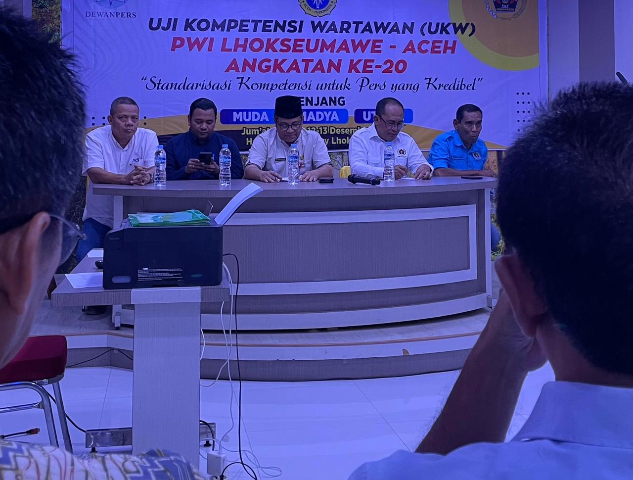 LHOKSEUMAWE (Waspada.id): Persatuan Wartawan Indonesia (PWI) Aceh melalui PWI Lhokseumawe menggelar Uji Kompetensi Wartawan (UKW) Angkatan XX di Hotel Grand Sydney, Lhokseumawe, Jumat, (12/12/25).