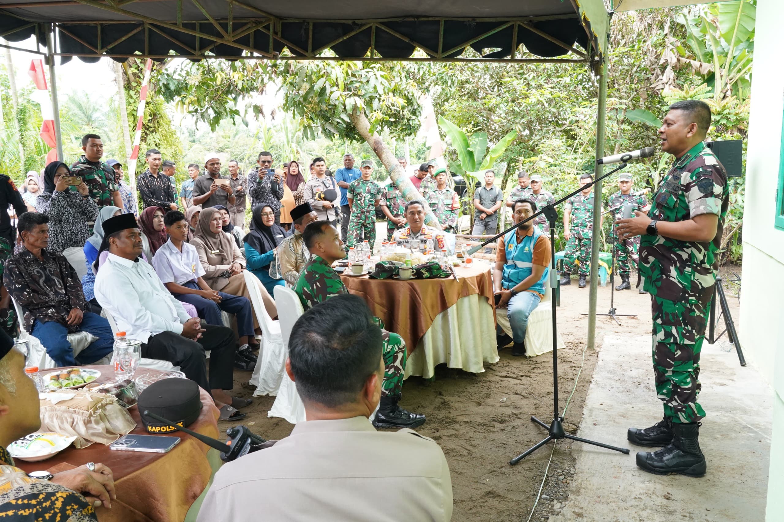 “Kondisi rumah ini yang hampir roboh tak layak huni, kita gotong royong bangun ulang, bersama Dandim, Kapolres, Camat, PLN serta masyarakat, hari ini kita resmikan sekaligus menyerahkan bantuan bedah Rumah Tidak Layak Huni (RTLH) menjadi Rumah Layak Huni (RLH),” ujar Danrem.