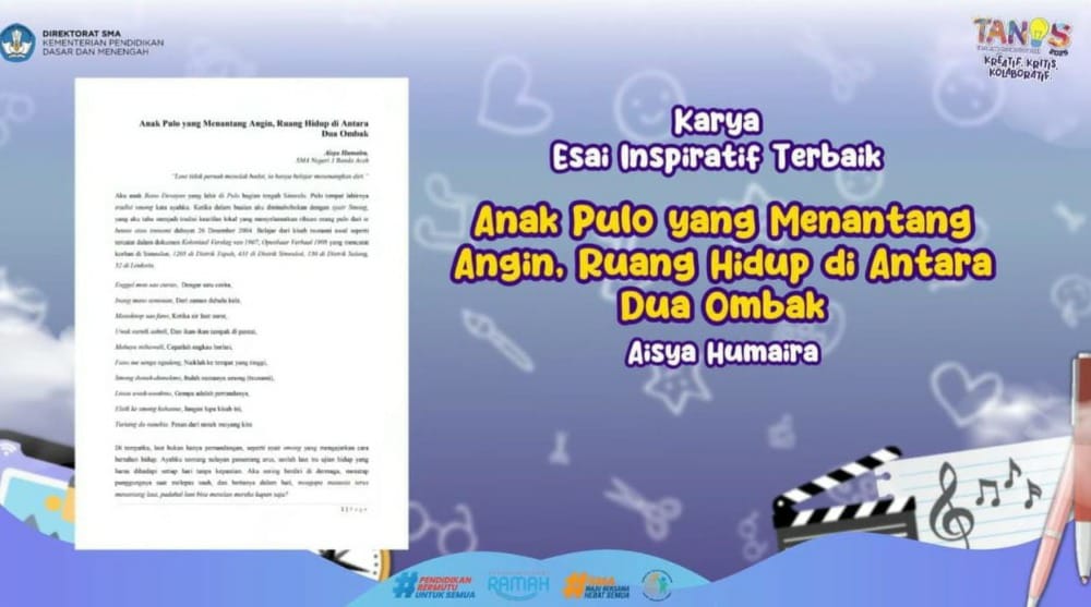 Muhibbul menyampaikan, pihak Direktorat SMA Kemendikasmen menilai karya Aisya sebagai salah satu esai dengan nilai inspiratif tertinggi, karena kemampuan penulis dalam menyampaikan realitas sosial melalui gaya bahasa yang kuat dan emosional.