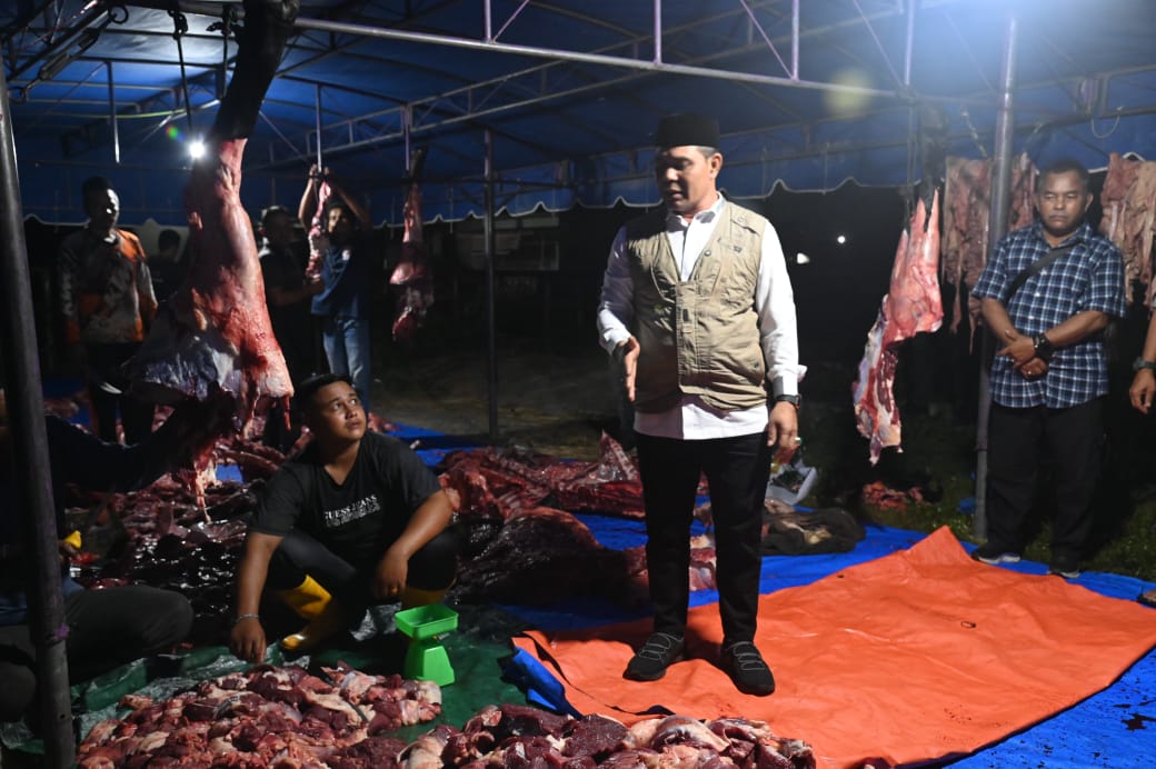 Demikian disampaikan Syech Muharram saat meninjau langsung proses pemotongan sapi meugang di Rumah Pemotongan Hewan (RPH) Lambaro, Gampong Lubok Batee, Kecamatan Ingin Jaya, Kamis (19/3/2026) dini hari.