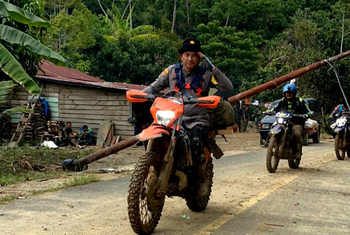 SIGLI (Waspada.id) : Menembus medan berlumpur, tanjakan curam, hingga jalan yang terputus, Tim Trail Seulanga Polres Pidie mengantarkan bantuan sembako ke wilayah terisolasi di Kabupaten Aceh Tengah, Sabtu, (13/12).