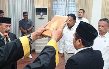 BANDA ACEH (Waspada.id): Ketua Pengadilan Negeri Banda Aceh, Dr Teuku Syarafi, SH, MH, melantik dan mengambil sumpah tiga orang Pejabat Kesekretariatan Pengadilan Negeri Banda Aceh di Aula PN Banda Aceh, Senin (22/09/25).