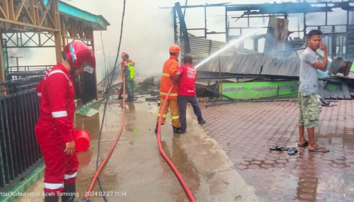 Sekitar pukul 10.57 Wib, petugas damkar menerima laporan dari masyarakat dan langsung menuju ke lokasi untuk melakukan proses pemadaman api dengan menurunkan tiga unit Damkar dan 1 armada tanki untuk melakukan proses pemadaman api, akhirnya api berhasil dipadamkan oleh petugas Damkar dari BPBD Aceh Tamiang.