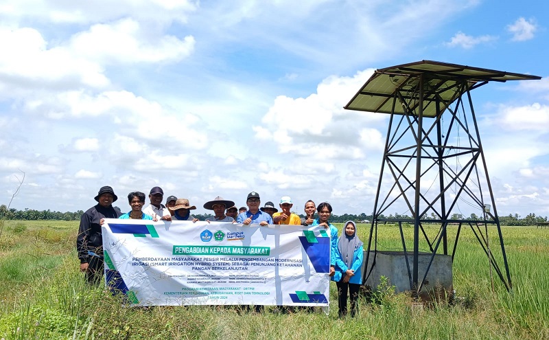 ACEH TAMIANG (Waspada): Tim Pengabdian Kepada Masyarakat Universitas Samudra (Unsam) melaksanakan kegiatan pengabdian Program Kemitraan Masyarakat (PKM) DRTPM dari Kementerian Pendidikan, Kebudayaan, Riset, dan Teknologi (Kemendikbudristek) dengan memberikan pembekalan sekaligus pemberian alat berupa teknologi irigasi modern Smart Irrigation Hybrid kepada Mitra Kelompok Tani Blang Luah di Desa Tualang Baru, Kecamatan Manyak Payed Kabupaten Aceh Tamiang.
