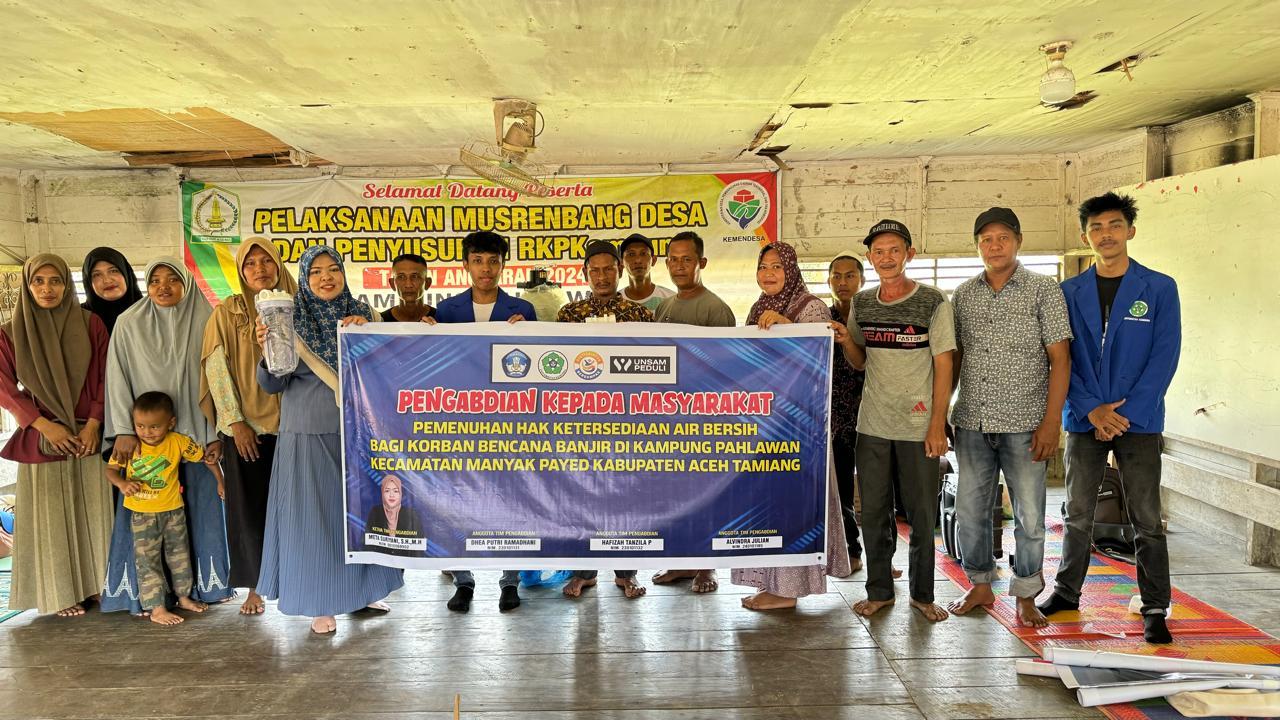 Ketua Tim PKM Meta Suriyani, S.H., M.H kepada wartawan, Minggu (12/04/2026) mengatakan, bencana yang menerjang Kabupaten Aceh Tamiang tidak hanya merusak rumah warga dan fasilitas publik. Sanitasi tidak berfungsi, sementara akses air bersih terputus total. Krisis air bersih pasca banjir pun menjadi permasalahan yang butuh perhatian untuk kesehatan masyarakat.