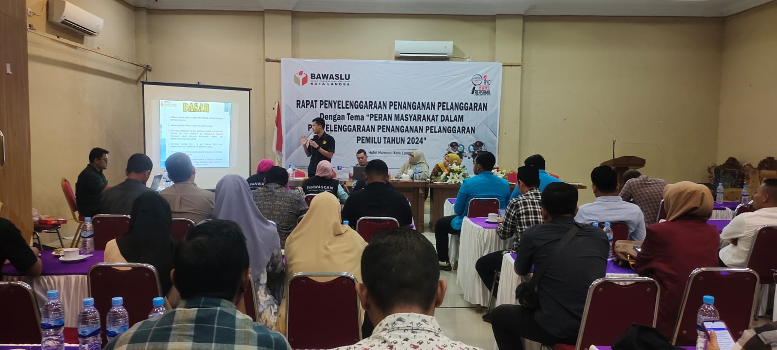 Koordinator Divisi Penyelesaian Sengketa dan Penanganan Pelanggaran Bawaslu Kota Langsa, Marida Fitriani MP, saat membuka rapat penyelenggaraan penanganan pelanggaran dengan mengusung tema ‘Peran Masyarakat Dalam Penyelenggaraan Penanganan Pelanggaran Pemilu 2024’, di Aula Hotel Harmoni Langsa, Sabtu (23/12).