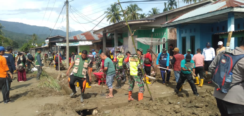 KUTACANE (Waspada.id): TNI, Polri, serta aparatur sipil negara (ASN) Pemerintah Kabupaten Aceh Tenggara kompak membersihkan sisa-sisa kotoran akibat banjir yang lalu.