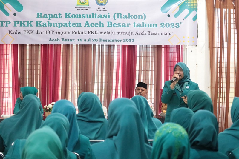 KOTA JANTHO (Waspada): Penjabat (Pj) Bupati Aceh Besar Muhammad Iswanto selaku Pembina membuka secara resmi Rapat Konsultasi (Rakon) TP-PKK Kabupaten Aceh Besar tahun 2023 dengan tema “Kader PKK dan 10 Program pokok melaju menuju Aceh Besar maju”.