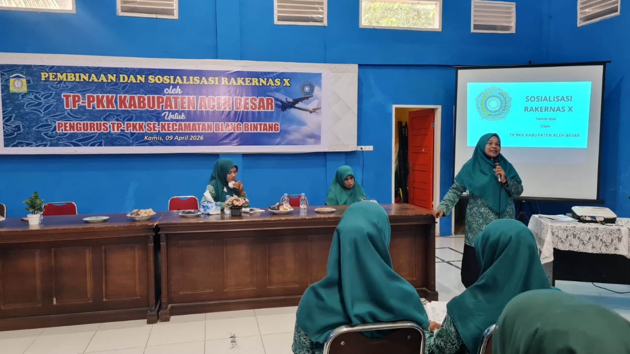 Kegiatan tersebut berlangsung di Gedung UDKP Kantor Camat Blang Bintang, Kabupaten Aceh Besar, Kamis (9/4/2026), yang dihadiri jajaran pengurus TP-PKK Kabupaten Aceh Besar, pengurus TP-PKK Kecamatan Blang Bintang, serta perwakilan kader PKK dari berbagai gampong (desa).
