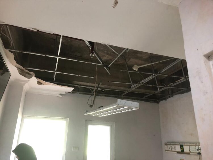 “Dari 5 lantai, yang terparah memang plafon lantai III. Kondisi ini diperparah lagi karena plafon menggunakan material gipsum,” ungkap dr. Erizaldi.