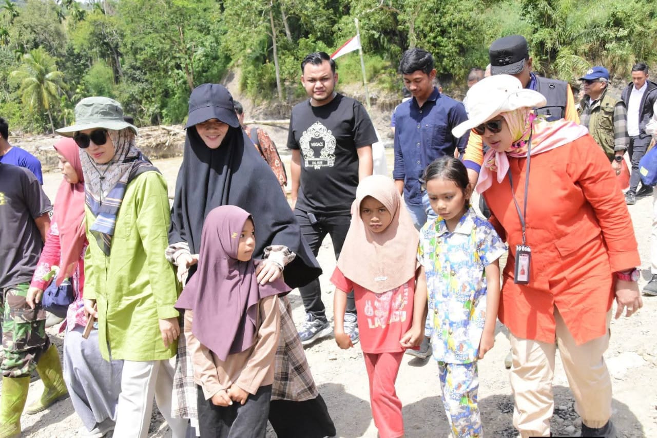 Usai meninjau jembatan yang terputus, rombongan melanjutkan kunjungan ke lokasi Huntara yang berada di sekitar Pasar Kecamatan Ketol, yang saat ini difungsikan sebagai posko pengungsian bagi masyarakat terdampak bencana.