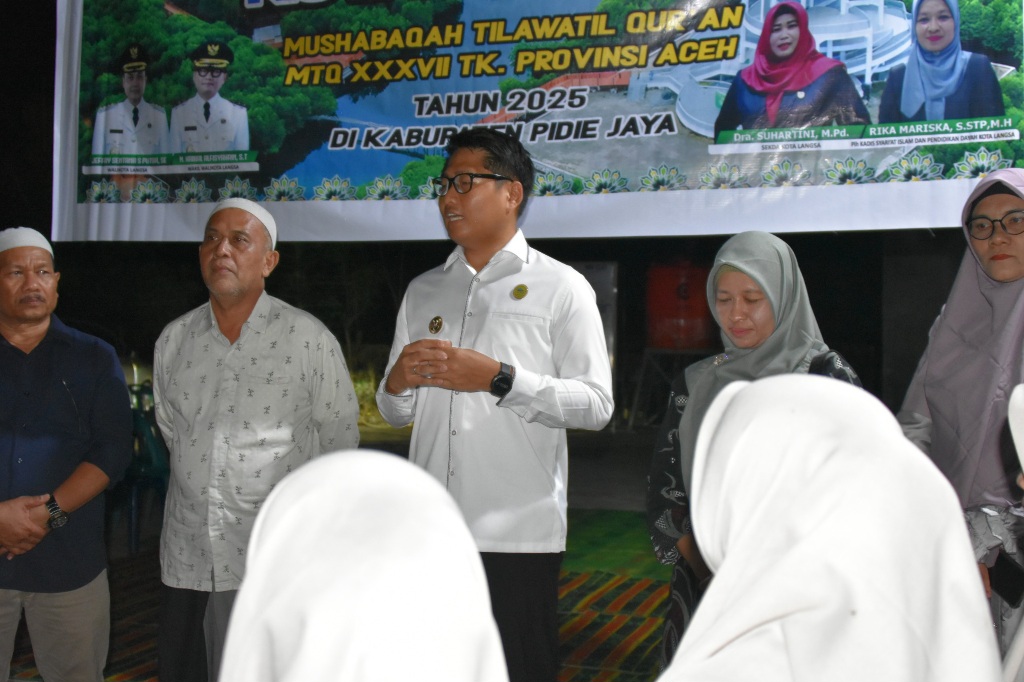 LANGSA (Waspada.id): Wakil Wali Kota Langsa, Muhammad Haikal Alfisyahrin, ST beri motivasi peserta MTQ Kota Langsa yang akan bertanding pada MTQ XXXVII Aceh tahun 2025 Pidie Jaya (Pijay) di pemondokan Kafilah Kota Langsa di Gampong Manyang Cut, Meureudu, Sabtu (1/11) malam.