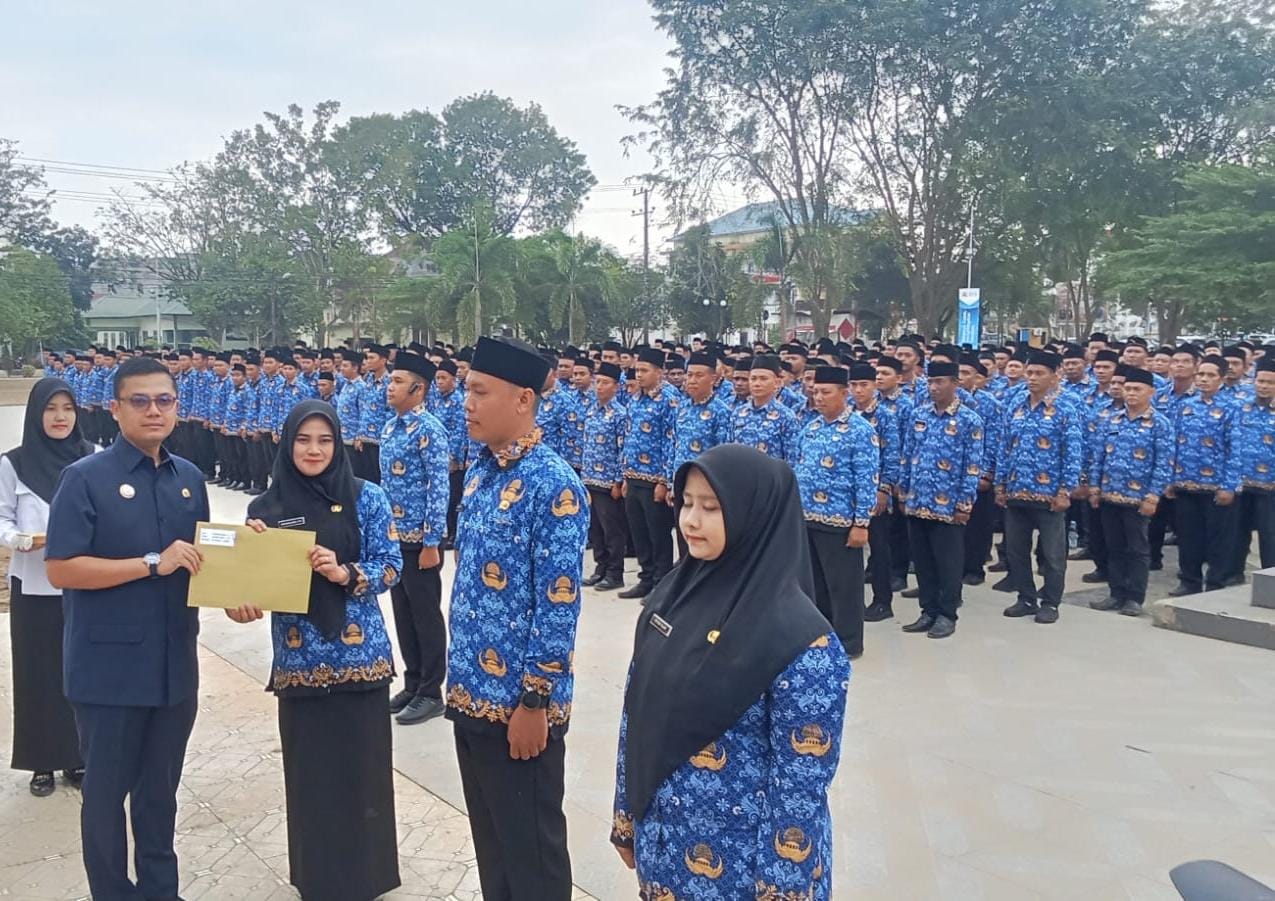 LANGSA (Waspada.id): Wali Kota Langsa, Jeffry Sentana S Putra SE menyerahkan Surat Keputusan (SK) pengangkatan kepada 1.352 Pegawai Pemerintah dengan Perjanjian Kerja (PPPK) Paruh Waktu di lingkungan Pemerintah Kota (Pemko) Langsa di Lapangan Merdeka Langsa, Kamis (31/7).