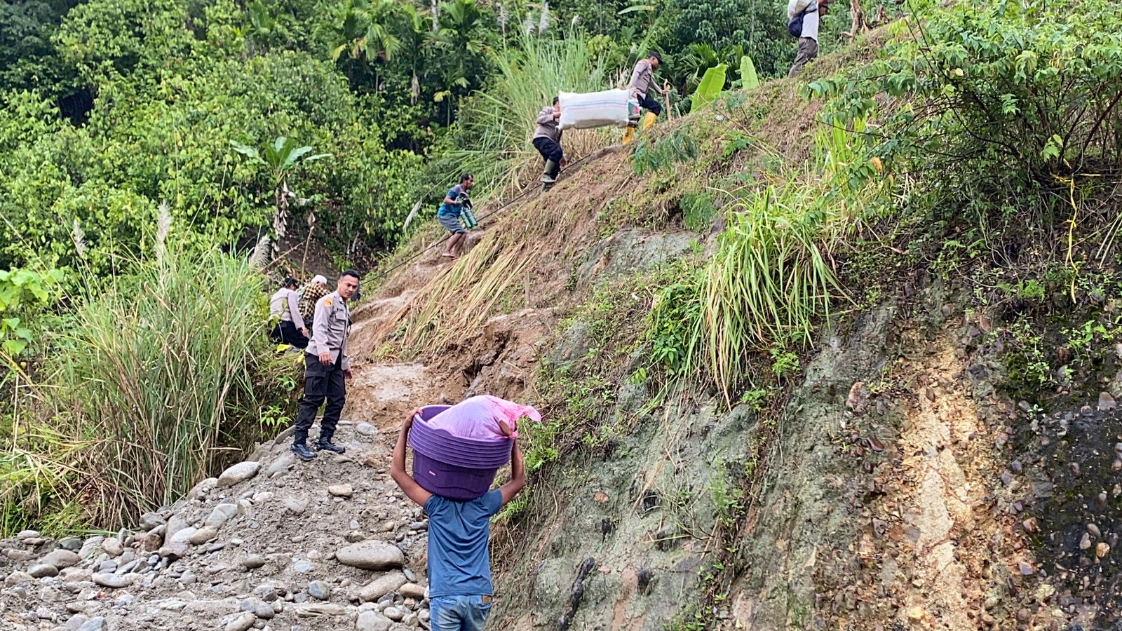 Di tengah keterbatasan tersebut, kehadiran personel Polres Aceh Tenggara menjadi harapan bagi masyarakat. Personel kepolisian terlihat turun langsung mendampingi warga melewati jalur pegunungan, membantu mengangkat dan memikul barang kebutuhan pokok, serta memastikan keselamatan masyarakat saat melintasi medan yang berbahaya.