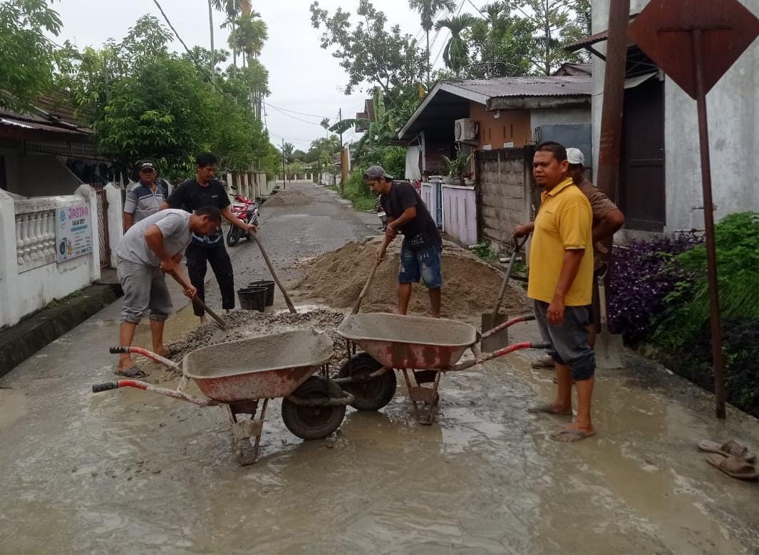 LANGSA (Waspada.id): Warga Dusun Utama, Gampong Paya Bujok Seulemak, Kecamatan Langsa Baro, Kota Langsa melakukan pengecoran badan jalan lintas dusun tersebut yang sudah bertahun lamanya berlubang dan tidak kunjung diperbaiki oleh pemerintah setempat.