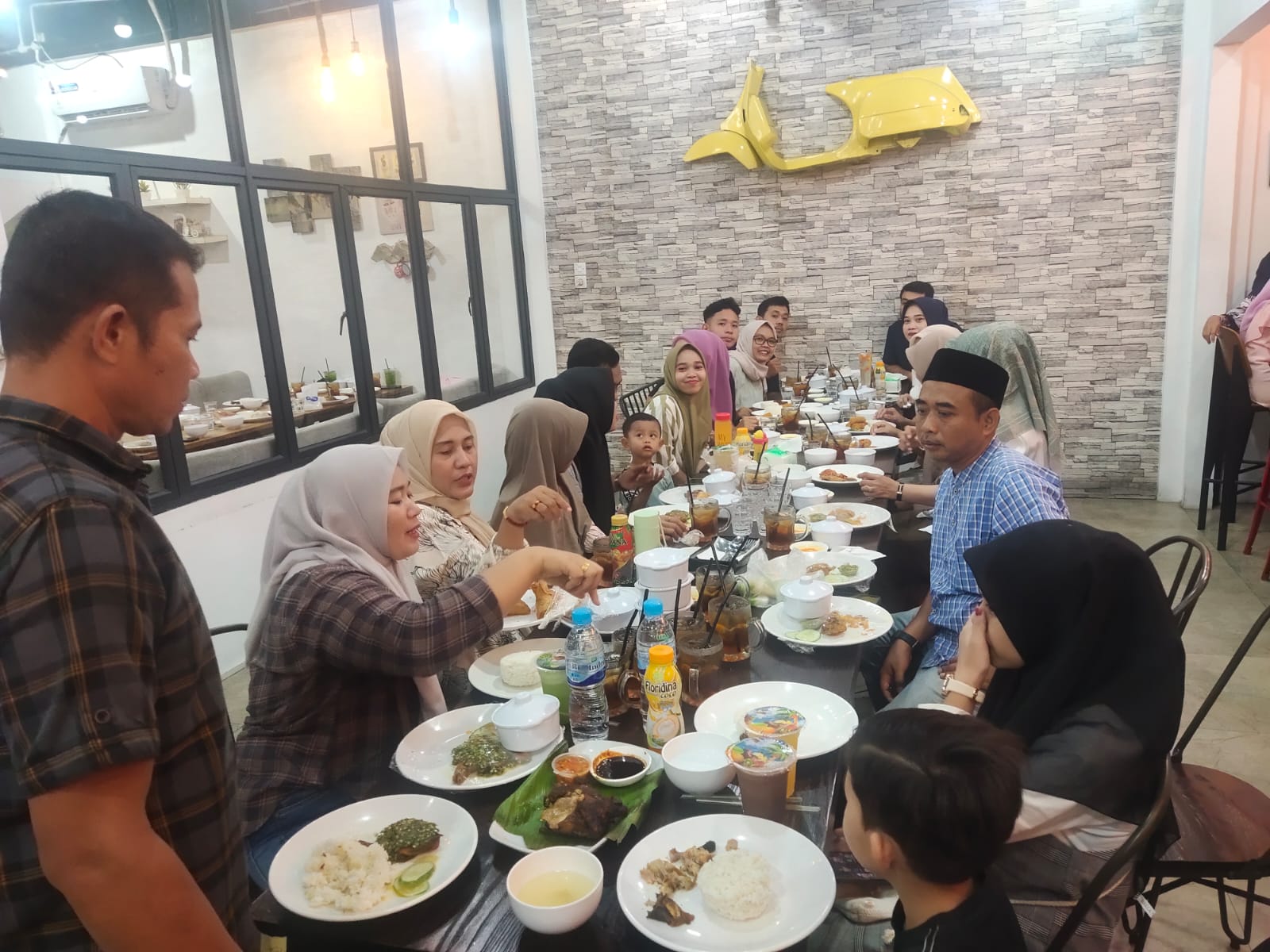 LANGSA (Waspada): Warga komplek BTN Sungai Pauh yang tergabung dalam forum Jalan Kemuning menggelar buka puasa bersama (bukber) dalam nuansa kekeluargaan, di Cafe Moris Langsa, Senin (1/4).