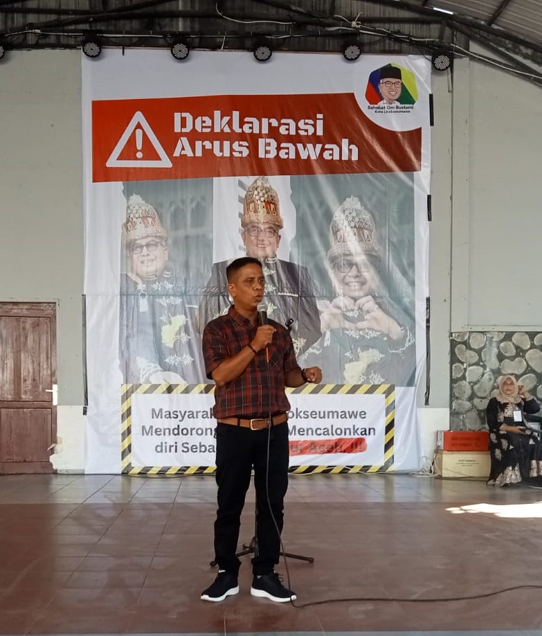 Hal itu diungkapkan Sofyan, salah seorang tokoh dan aktiVis sekaligus selaku ketua panitia masyarakat relawan deklarasi Bustami sebagai bacalon gubernur berlangsung di salah satu cafee Desa Mon Geudong Kec. Banda Sakti Kota Lhokseumawe, Kamis (15/8).