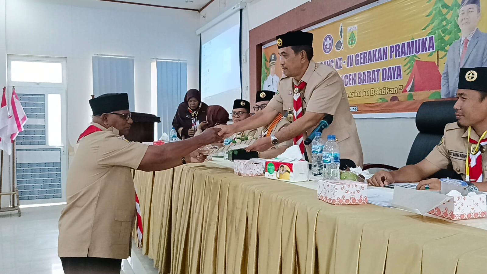 BLANGPIDIE (Waspada): Zulkarnaini SE, dipercayakan menakhodai Kwarcab Pramuka Aceh Barat Daya (Abdya) periode 2023-2028 menggantikan Muslizar MT, mantan Wakil Bupati Abdya, yang sudah berakhir masa bhaktinya.