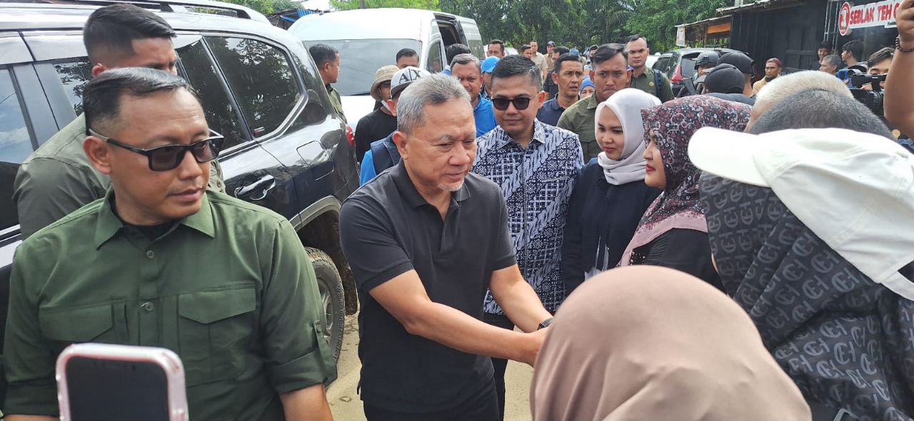 LANGSA (Waspada.id): Menteri Koordinator Pangan Zulkifli Hasan didampingi Wali Kota Langsa Jeffry Sentana S Putra kunjungi dan salurkan bantuan kepada pengungsi pasca bencana banjir dan tanah longsor di Mushalla Al-Jamiatun Nisa, Gampong Paya Bujok Blang Pase, Kecamatan Langsa Kota untuk diserahkan ke Dinas Sosial Kota Langsa, Sabtu (13/12/ 2025).