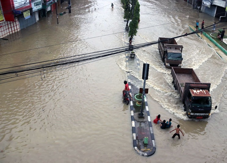 Pada Jumat (28/11/2025), banjir masih menggenangi simpang Pulo Brayan, Kecamatan Medan Barat tepatnya di bawah fly over. Ruko dan perkantoran tutup dan aktivitas warga di kawasan tersebut lumpuh.