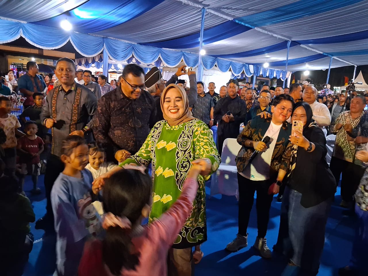Suasana makin meriah ketika penyanyi Wan Abi turun panggung membawakan lagu dimana Bupati Asri Ludin Tambunan dan Ny Jelita Asri Ludin Tambunan mengajak anak-anak untuk menari bersama. Tak ayal, hal itu mendapat tepuk tangan meriah dari warga.