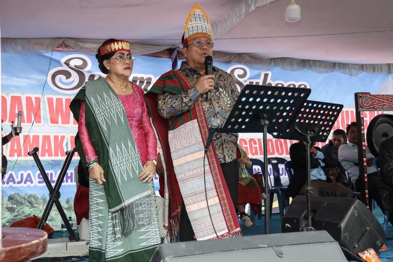 SAMOSIR (Waspada.id): Wali Kota Pematangsiantar Wesly Silalahi SH MKn, didampingi Ketua TP PKK Ny. Liswati Wesly Silalahi, menghadiri Pesta Wisata Leluhur Raja Silahisabungan di Tambak Raja Silahisabungan, Dolok Paromasan, Dusun II Siantar-antar, Desa Lumban Pinggol, Kecamatan Pangururan, Kabupaten Samosir, Sabtu (22/11/2025).