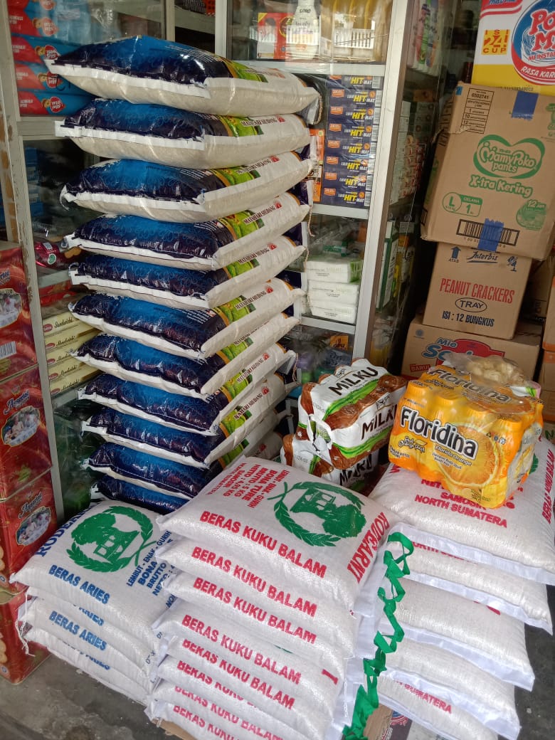 TUMPUKAN beras pada salah satu kios pedagang di Kec. Pangururan, Kab. Samosir. Waspada/Valen