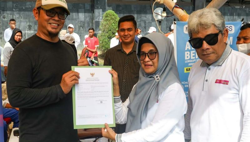 Wali Kota Susanti Dewayani turut dalam senam bersama dan berkesempatan menyerahkan Nomor Induk Berusaha (NIB) kepada pelaku UMKM.
