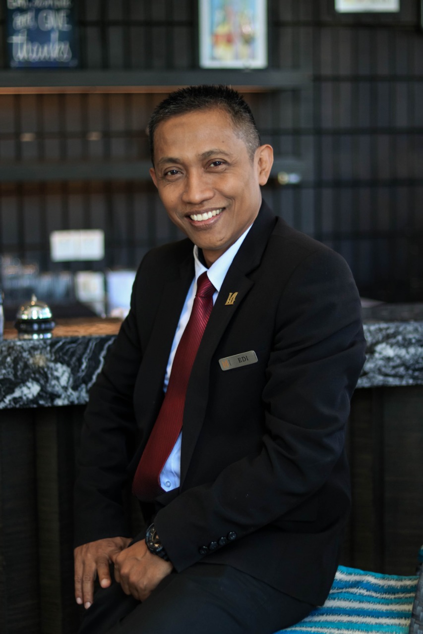 Awalnya hanya untuk mengisi waktu luang di masa kuliah. Namun, pengalaman coba coba tersebut akhirnya mencuri perhatian Edi untuk lebih serius terjun ke dunia hospitality. “Ya walaupun jurusan kuliah saya tidak sesuai dengan apa yang saya lakoni waktu itu, tapi ada sesuatu yang berbeda di dunia perhotelan ini, terutama di bagian Food & Beverages, yaitu tantangan yang besar dan sesuai dengan passion saya untuk berinteraksi dengan banyak orang,” kenang pria yang dikenal humble dan murah senyum.