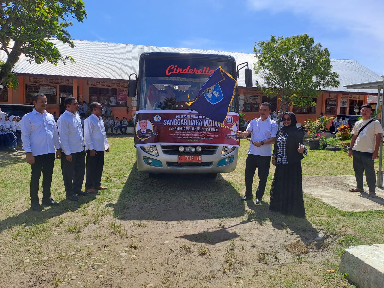Informasi terbaru, 20 peserta bersama dengan tim dan Ibu Kepala Sekolah Menengah Pertama Negeri 2 Meurah Mulia telah sampai di Tanjung Balai Karimun, Kamis (20/10). Sedangkan pelepasan keberangkatan, Rabu (19/10). Mereka diberangkatkan dengan satu unit bus yang dicarter khusus oleh Pemerintah Kabupaten Aceh Utara.