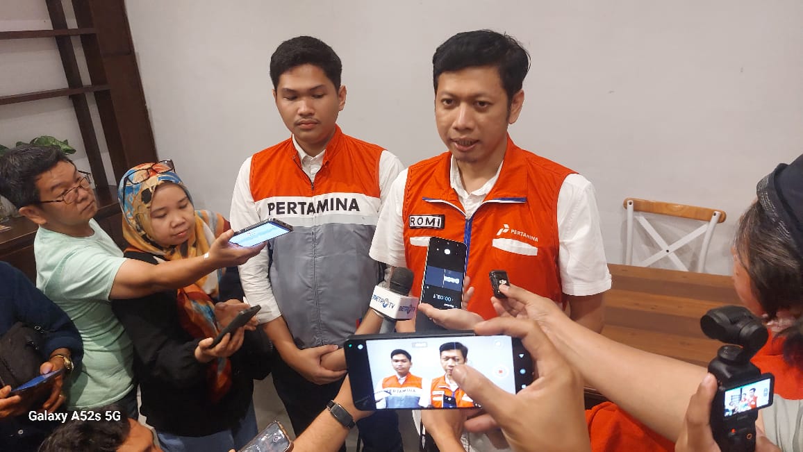 Section Head CommRel Pertamina Patra Niaga Regional Sumbagut, M. Romi Bahtiar, saat menjawab pertanyaan wartawan menanggapi antrean kendaraan yang terjadi di sejumlah Stasiun Pengisian Bahan Bakar Umum (SPBU) di Medan dalam beberapa hari terakhir, menjelaskan bahwa antrean yang sempat terjadi utamanya disebabkan oleh kendala cuaca ekstrem.