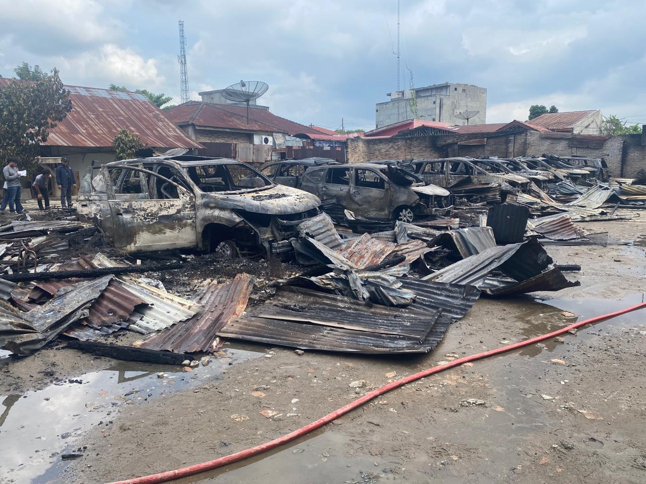 “Ini ko bangkai 19 mobil dan empat sepeda motor yang tampak hangus terbakar,” jelas Ayen di lokasi kejadian.