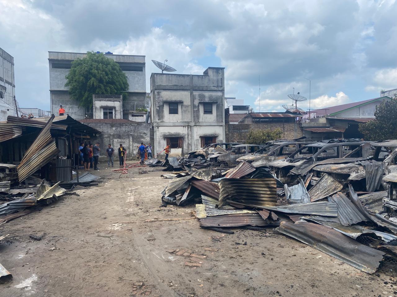KISARAN (Waspada.id): Kebakaran hebat melanda sebuah gudang penyimpanan mobil di Jalan Sisingamangaraja, Kisaran, Kabupaten Asahan, Kamis (2/4) sekitar pukul 12.45 WIB. Akibat kejadian ini, sebanyak 19 unit mobil dan 4 unit sepeda motor dilaporkan hangus terbakar, meskipun tidak ada korban jiwa yang dilaporkan.