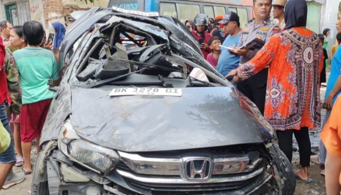 “Sesampainya di TKP, diduga pengemudi Honda Mobilio BK 1278 GI kurang berhati-hati apalagi perlintasan tanpa adanya penjaga. Di saat bersamaan KA Lilawangsa U87 No BB 2037804 yang datang dari arah Binjai hendak menuju Kota Medan lalu menabrak bagian samping kiri mobil Mobilio. Akibatnya, Mobilio terhempas dan keluar dari jalur rel KA sehingga keempat penumpangnya mengalami luka parah dan 4 meninggal dunia di lokasi tabrakan,” ujar Kanit Lantas Polsek Sunggal.