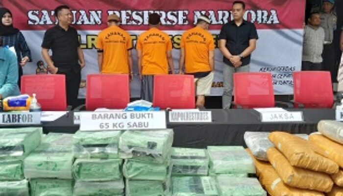 MEDAN (Waspada): Polrestabes Medan mengungkap 4 kasus narkotika dengan mengamankan 3 orang tersangka. Jumlah barang bukti yang berhasil disita sebanyak 65 Kg sabu dan 35,7 Kg ganja.
