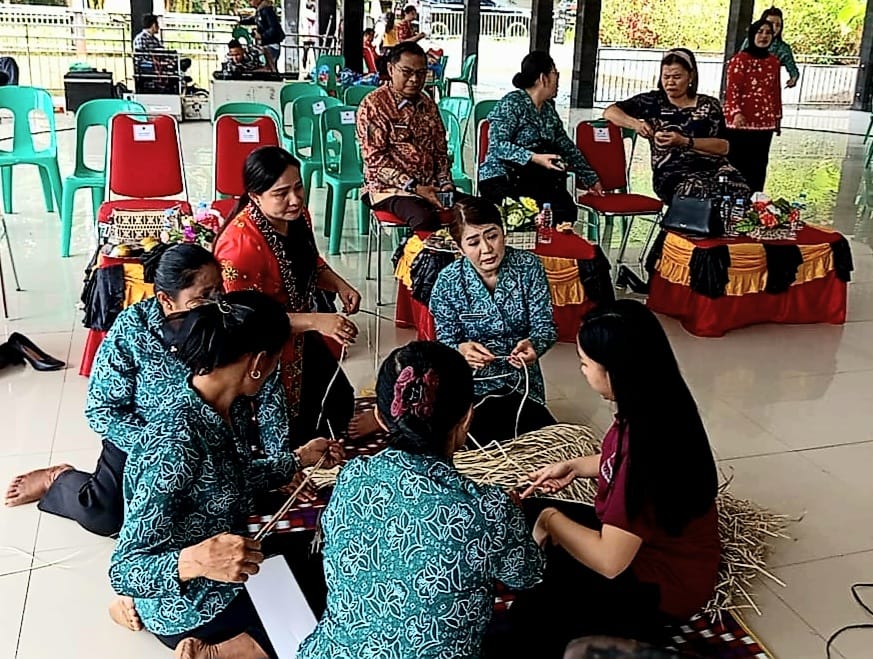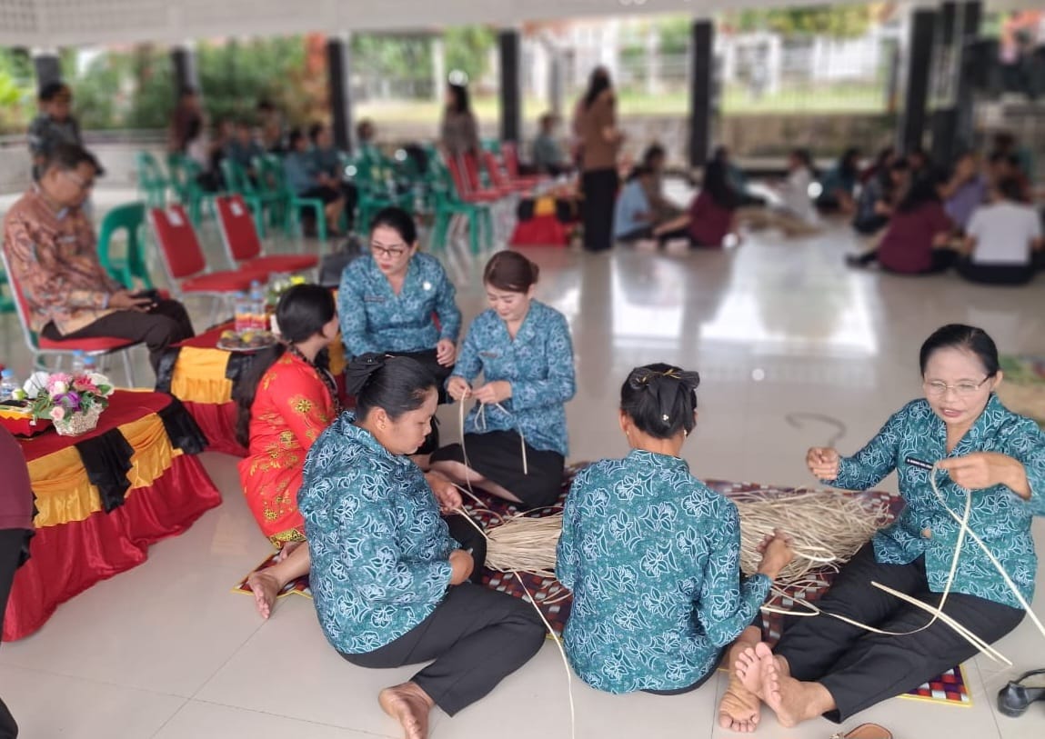 “Hadirnya pelatihan ini merupakan bentuk komitmen Pemerintah Daerah bersama Tim Penggerak PKK Kabupaten dalam meningkatkan pemberdayaan ekonomi keluarga, khususnya melalui pemanfaatan potensi lokal seperti anyaman dan produk turunan kelapa, serta kemampuan pemasaran digital yang hari ini menjadi kebutuhan utama dalam dunia usaha.” ujar Sozisokhi Hia.