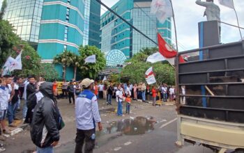 Selain melakukan penyegelan gedung rektorat, massa juga memasang sejumlah spanduk bertuliskan, “Tanah ini seluas lebih kurang 8983,6 m2 adalah hak/milik ahli waris dari alm HT Abdullah Umar Hamzah dan alm HT Iskandar Zulkarnain”.