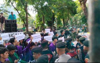Usai menyampaikan orasinya, para peserta aksi meninggalkan lokasi dengan tertib. (cpb)