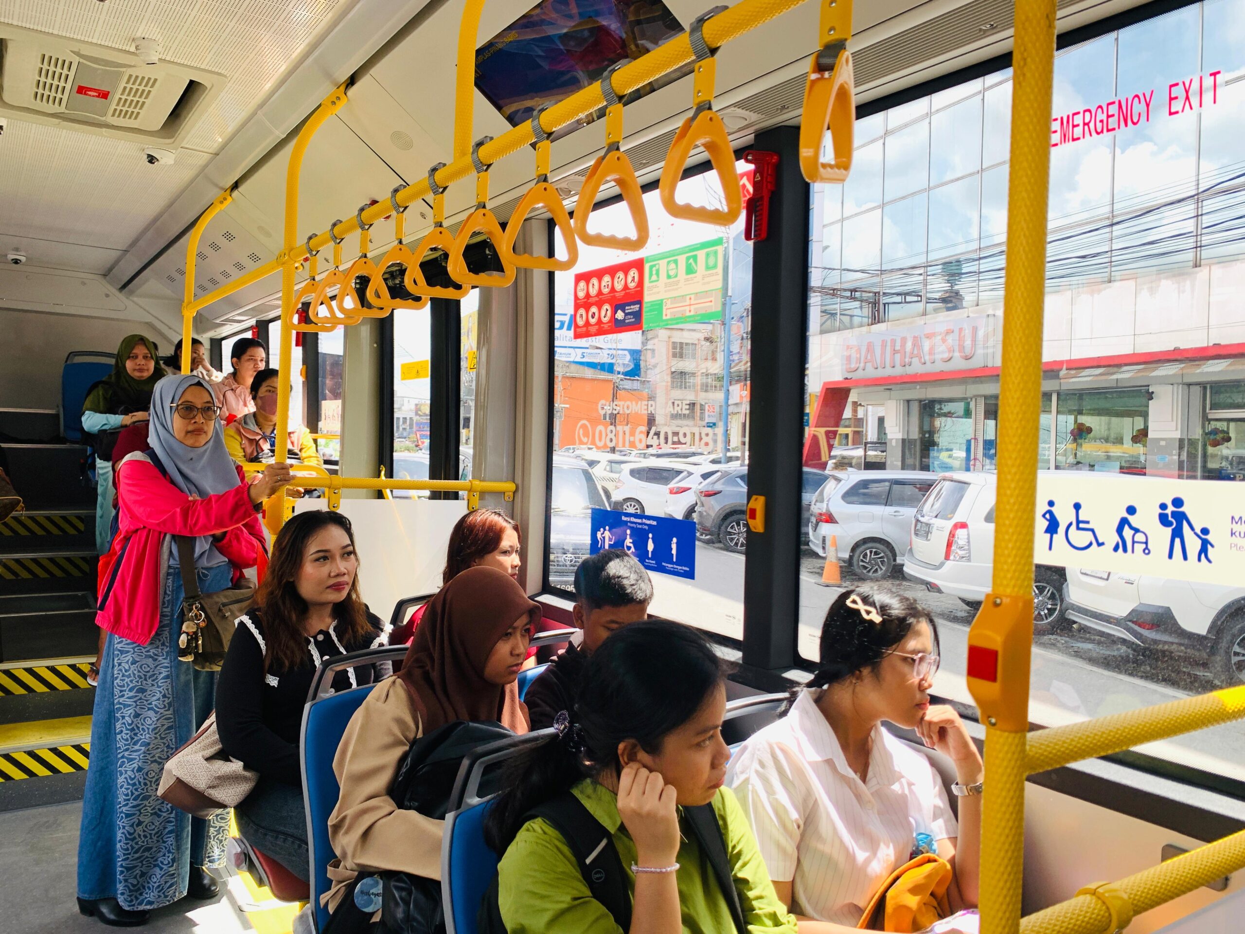 Ungkapan senada juga disampaikan Liza (45) warga Pinang Baris. Menurut wanita berhijab abu-abu dan berkacamata itu, kehadiran bus listrik membuat masyarakat merasa lebih aman dan nyaman saat berpergian dibandingkan menggunakan angkutan umum.